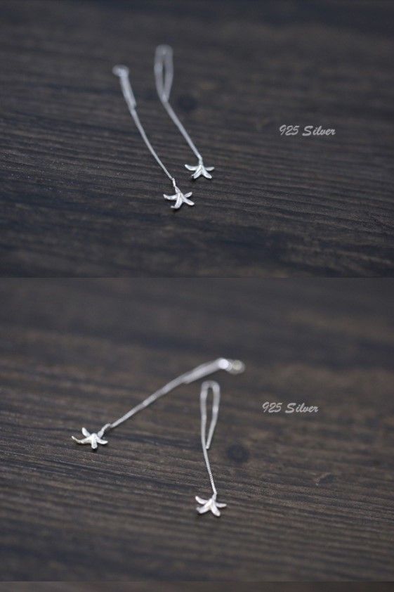 Silver Starfish Drop Earrings