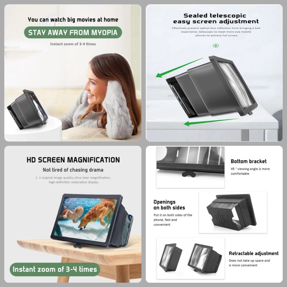 1.Brand new and high quality 2.Adopt HD zoom optical technology, no battery needed. 3.Compact size and lightweight, easy to carry Especially suitable for watching 3D movies and 3D effect is stronger. 4.Relieve your eyes from uncomfortable and tired feelings when in a long time watching. 5.Great for elders to read newspaper in the watch the news on the Internet as a magnifying glass. 6.Compact size and lightweight, easy to carry. Specifications: Type: Mobile Phone Video Screen Magnifier Compatible with: for all kinds of smart phones Size: 18.5 * 8.5 * 12cm Packing size: 19 * 12.5 * 4.8cm Material: PVC+ABS Colors: Black, White Package Included: 1x Mobile Phone Video Screen Magnifier