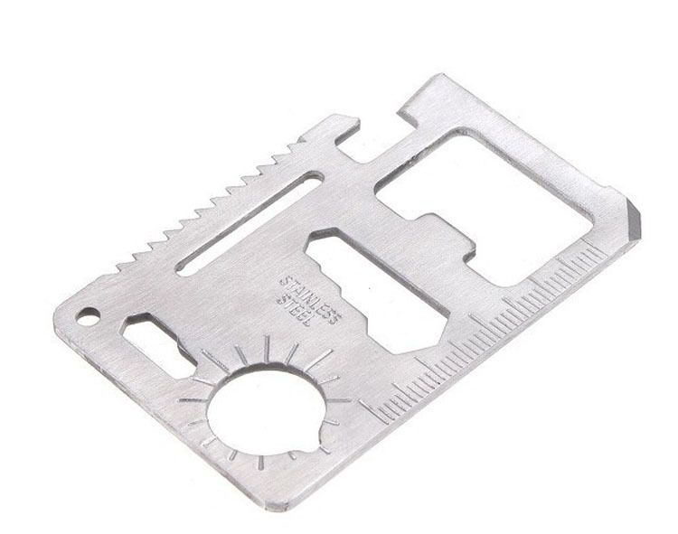 11 in 1 Outdorr Multifunction Pocket Tools Camping Hiking Hunting EDC Survival Tool Stainless Steel Knife Opener Lifesaving Card Features: 1. 100% Brand New 2. Weight: 30g 3. Size: 7 x 4.5 cm 4. Material:Stainless steel 5. Thickness: 0.2CM Hardness: 55 6.Function:Bottle opener,can opener,ruler,nail puller,a paring knife,chisel,direction recognizer,medium and small wrench, serrated knife,key rings and other functions... 7. Perfect for camping, hiking, or traveling in general 8. Bring it on, let it accompany you right Package Included: 1 * Multifunction portable stainless steel tool card