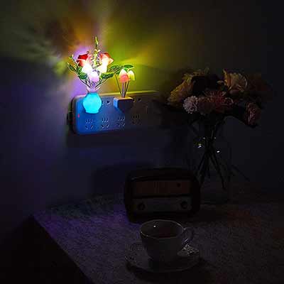 Add a soft, warm, and "botanical" light to any corner, nook, or room with this 6-Piece set of Color-Changing Mushroom Night Lights Moderate brightness ensures these LED lights won't irritate your eyes or interfere with sleep. Energy efficient—turning on automatically when it's dark and off in bright environments— each Mushroom Night Light measures about 12 x 4.5 x 4.5 cm/ 4.72 x 1.77 x 1.77 inches and features one 7-color changing LED bulb, with the remaining lights emitting a soft, low white light. A flexible design lets you bend the mushrooms, leaves, and flowers to the position you want. Ideal for nurseries, children's rooms, corridors, bedrooms, bathroom, kitchen, living room, stairs, entrance, and more! Also makes a great gift.