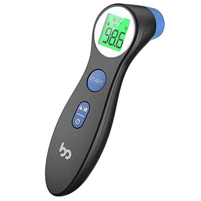 Get accurate and reliable temperature readings almost instantaneously with the femtometer Touchless Thermometer for Adults and Kids. Equipped with the latest medical infrared technology, the forehead thermometer's precise sensor probes and optimized algorithm calculation produces an easy to read temperature on a big LCD screen with 3 backlight indicators(green/yellow/red) in just one second. It can even store up to 10 sets of data to help you track temperature changes for the whole family! Makes a great gift for baby showers, parents, grandparents, and families.