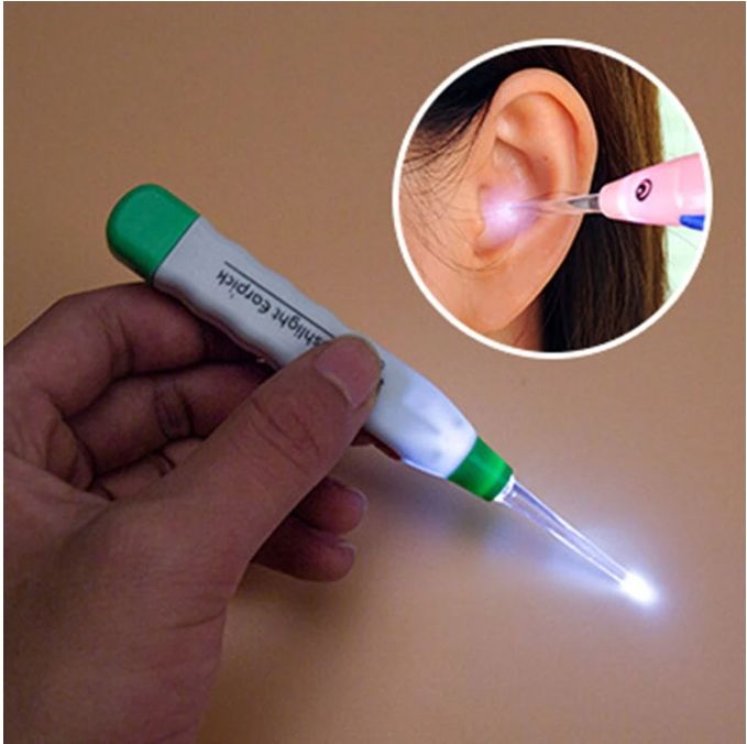 Switch on before use. The spoon part illuminates to facilitate inspecting the inside of an ear.