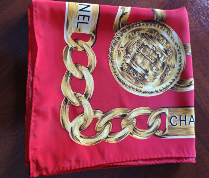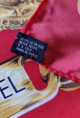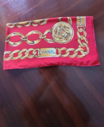 Chanel Red Yellow Cambon Chain Link 31 Rue Paris Scarf/Wrap 35"L x 35"W x 35"H