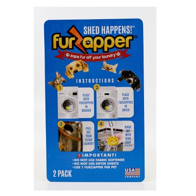 The FurZapper Pet Hair Remover is a safe, re-usable, and effective pet hair remover that works in your washer/dryer to gently remove pet hair from your clothing. Just place the 4x4x1-inch FurZapper into your washing machine during your regular washing cycles. This handy gadget then goes to work gently adhering to and separating pet fur or pet hair from your clothing. Use it in the dryer as well for maximum fur removal! Made from sturdy plastic and 100% safe for all clothing. Pack of two, sufficient for two medium-sized pets.