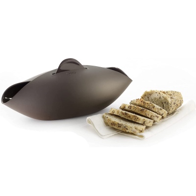 Fill your home with the smell of fresh baked bread, quickly—with no mess and less work—with the Lekue Silicone Bread Maker! This innovative bread maker features a versatile design that can bake real homemade bread in one single container. Shaped as a partially closed bowl, the Luke bread maker allows steam to circulate inside, making the dough moist, preventing the bread from drying out, and resulting in a crusty, golden texture everyone will love. It's constructed of 100% platinum silicone that can withstand high temperatures up to 428ºF (220ºC) and is microwave and dishwasher safe. Measures 9.06"D x 11.02"W x 5.12"H and arrives with easy recipes for homemade bread. Makes a great gift for anyone who likes the smell and taste of homemade bread.