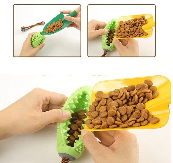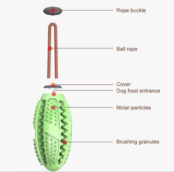 Material: TPR (Thermoplastic rubber) Two ways to load snacks. It is both a dog's toy and a dog's toothbrush. Double layer design for cleaning dog's teeth thoroughly. It can be used as a dog interactive toy and training tool.
