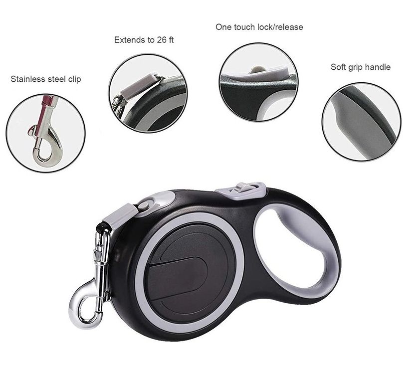 Retractable Dog Leash nylon tape extends up to 26 Feet (ca. 8m)