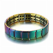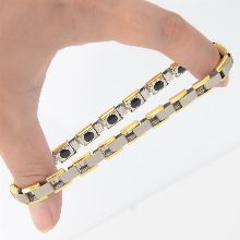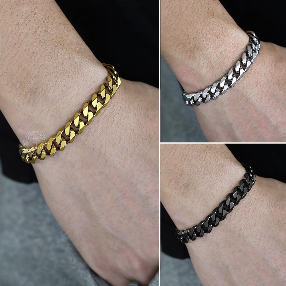 This bracelet is made from stainless steel, and it has a black color that will go with any outfit. It's also available in gold and silver for you to choose from. The best part? This bracelet is perfect for both men and women!