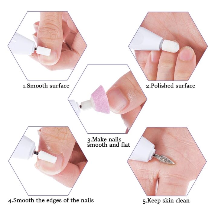 This manicure and pedicure kit features a high-speed rotation powerful enough to trim and shape tough acrylics and toenails, yet is gentle enough to work on cuticles and weak or splitting nails.These powerful rotations combined with each precision crafted nail head lets you sculpt, shape, smooth and shine your nails quickly and easily.
