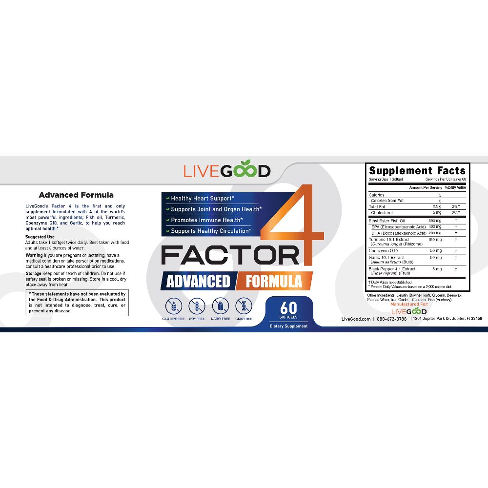Proudly formulated by one of the world's top immunologists, Dr. Heather Volpp, LiveGood’s Factor 4 is the first and only Inflammation Management supplement formulated with 4 of the world’s most powerful anti-inflammatory ingredients; Fish Oil, Turmeric, Coenzyme Q10, and Garlic, to help you CONTROL and even REVERSE inflammation!