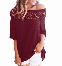 Model Number: women t-shirt Lace stitching oblique shirt